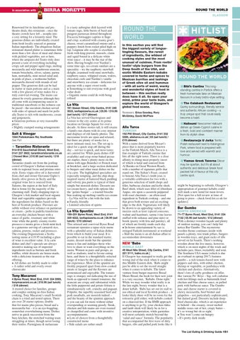 ROUND THE WORLD ✱ Bibi’s Cantina This longstanding cantina in Partick offers a fresh homemade take on Mexican flavours in a lively bistro-style setting. ✱ The Calabash Restaurant Quirky surroundings, friendly service and authentic African cooking – a truly unique spot that could easily become a habit. ✱ Halloumi Newcomer Halloumi dishes up Greek-Cypriot cuisine in a fresh, bold and confident manner from its stylish diner. ✱ Restauracja U Jarka Terrific Polish restaurant next to Kelvingrove Park, where food is prepared with love and served with warmth and humour. ✱ Yiamas Greek Taverna Décor may be spartan, but it’s all about authentic and delicious Greek food packed full of flavour at this city centre spot. might be beginning to subside, Glasgow’s appropriation of gourmet kebabs could well mark a new trend for meat-lovers. [Not open for a full review at time of going to press – check food.list.co.uk for updates].