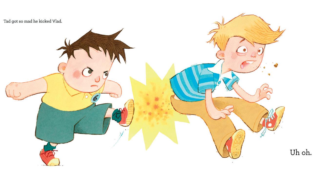 Who wouldn’t be outraged when a piece of cake is stolen? Written by Julian Gough and illustrated by Glasgow’s Ross Collins, When Tad Kicked Vlad (10 February) features such an incident which results in a global cycle of violence that returns a full year later back at Tad’s house. Will the little guy break this chain of pain? Course he will.