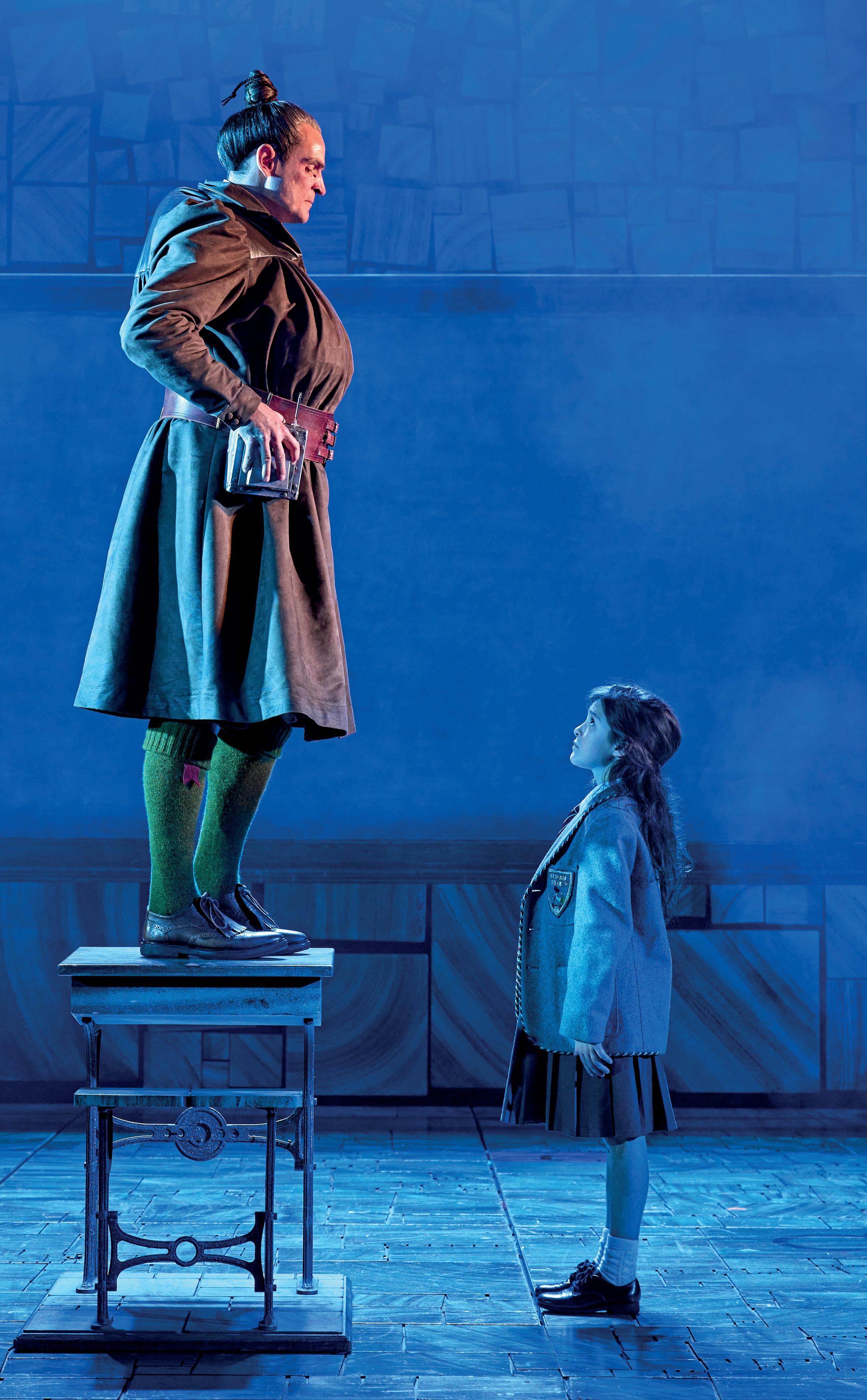 ‘It keeps it fresh,’ agrees Stafford. ‘I love working with children. I started acting when I was seven, and at nine I did my first film, Peter Pan, with Mia Farrow and Danny Kaye, so it takes me back to being that age. It’s magical for these young actors, particularly a story like this because Dahl empowers children and this lot just lap it up.’ While Stafford and Thornhill may love and admire their co-stars, their characters unequivocally do not, forever taunting Matilda for her bookish ways. What’s it like to play loathsome parents to such a sweet girl? ‘Wonderful! I like to put a spanner in the works,’ laughs Stafford. ‘It’s the best bit isn’t it, being the baddie?’ His partner in crime nods in agreement. ‘Playing the baddie is always fun,’ says Thornhill. ‘And the nicer the show, the nastier you can be.’ Given how morally bankrupt Mr Wormwood is, it seems like a backhanded compliment to say it’s a role Stafford was born to play. But even those close to him could see how well he’d inhabit the part. ‘I got a call from someone in my family who saw the show in London,’ recalls Stafford. ‘And they said “we’ve just come out of Matilda and there’s a part in it that could have been written for you”. So I mentioned it to my agent, and he rang me a week later to say “you won’t believe this: they’re auditioning for the UK tour”. I’d never even seen the show, but as soon as I got the part, I watched it in London and thought it was brilliant. It really captures the essence of Dahl and doesn’t shy away from the dark side or the cheekiness.’