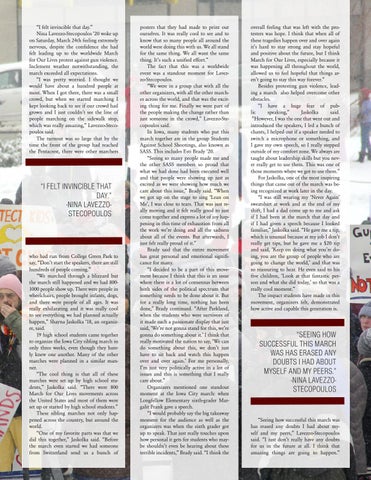 “SEEING HOW SUCCESSFUL THIS MARCH WAS HAS ERASED ANY DOUBTS I HAD ABOUT MYSELF AND MY PEERS.” -NINA LAVEZZOSTECOPOULOS