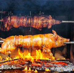 În Serbia, Pečenje na Ražnju este o mâncare tradițională, servită adesea în timpul marilor sărbători, cum ar fi nunțile și sărbătorile ortodoxe. Purcelul de lapte este prăjit pe un grătar la foc deschis și este condimentat simplu cu sare și, uneori, usturoi. Procesul lung și lent de prăjire asigură o carne foarte fragedă și o piele crocantă. Este adesea mâncat cu garnituri precum ajvar (o pastă picantă de ardei și vinete), pâine și cartofi fierți.