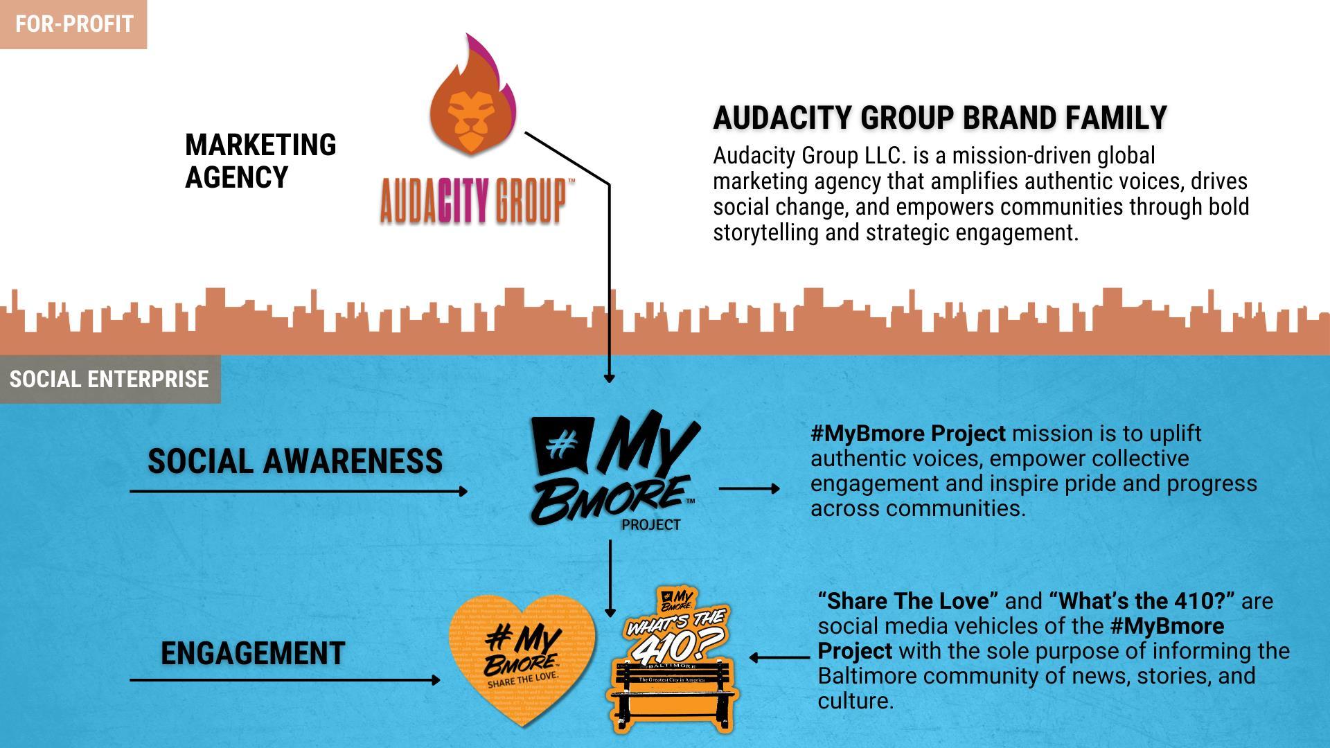 • Dionne Joyner-Weems is a Baltimore-born storyteller, strategist, and Chief Energy Officer of Audacity Group LLC—a brand and community engagement agency that turns insight into bold impact. Through her social enterprise, the #MyBmore Project, she creates spaces where lived experience guides the narrative and stories guide strategy. Dionne leads community-based initiatives that uplift resident voices, strengthen collaboration, and translate neighborhood truths into data that drives change.