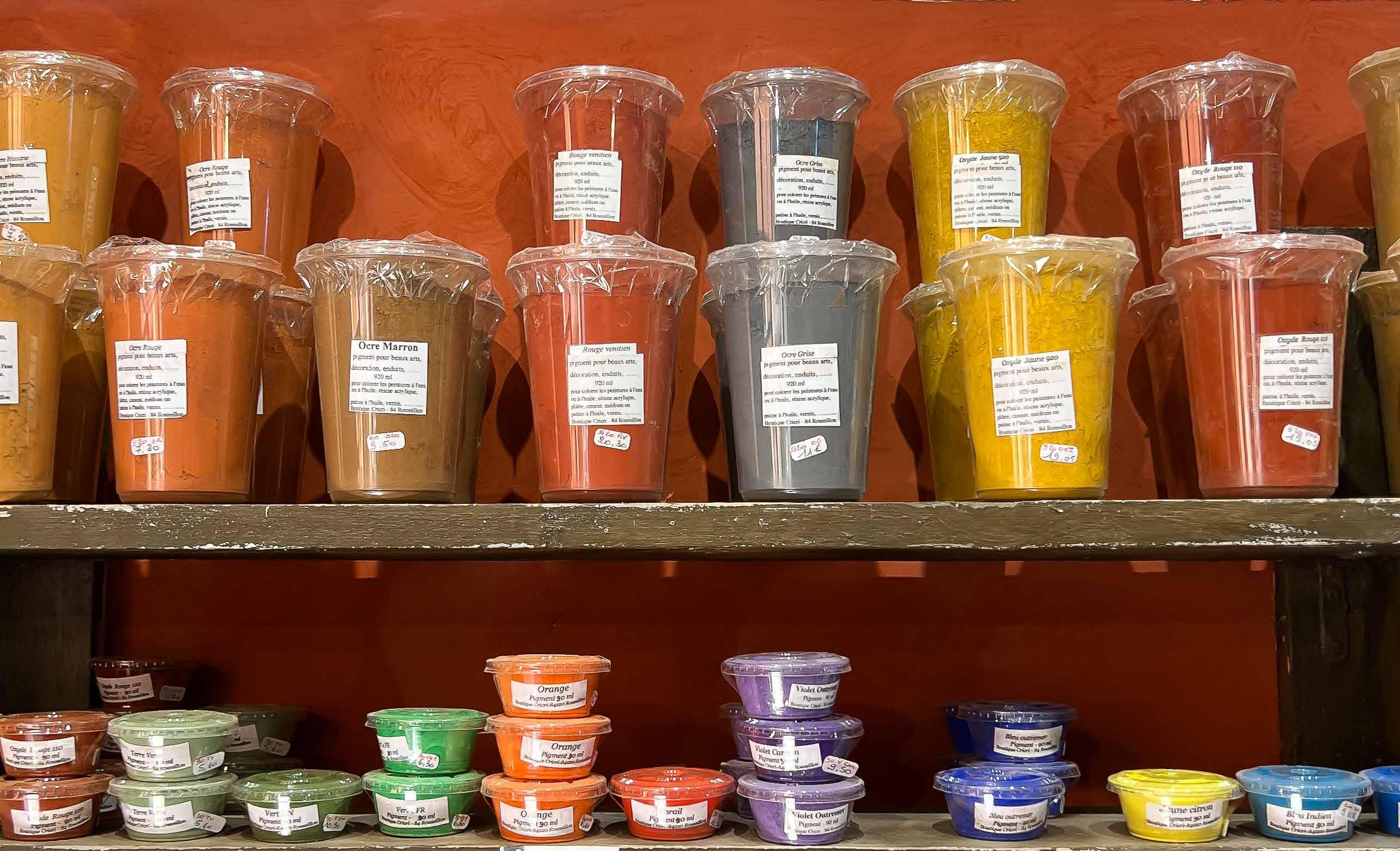 Artists have long been drawn to the region to use extracted ochre pigments in their art. One can often find an artist set up somewhere in the village plein air painting. A small shop in town sells paint pigments in a multitude of hues, made from the ochre earth.