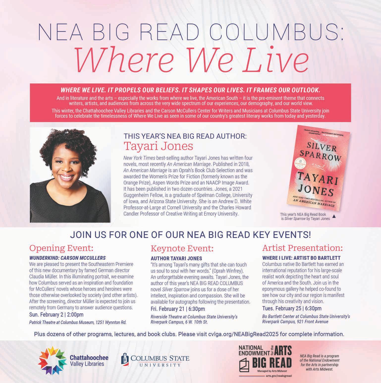 For more info, call 706) 565-1200, email mccullerscenter@ columbusstate.edu, or visit cvlga.org/NEABigRead2025