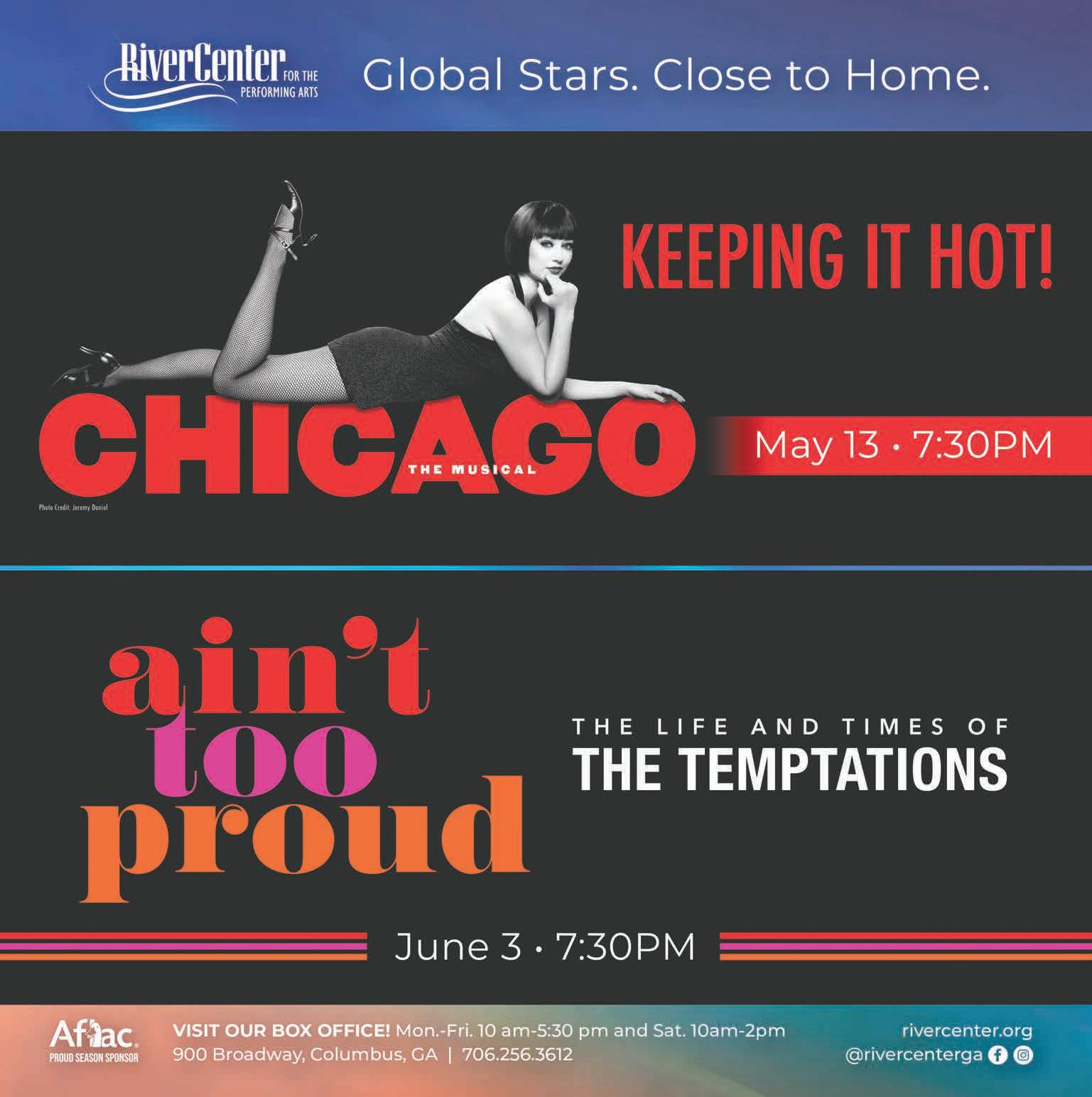 Starring Buster Keaton, college boy William Canfield, Jr. reunites with his boat captain father to help him compete with a rival riverboat owner, J.J. King. But when Bill, Jr. finds himself falling for King’s daughter Kitty, hilarious complications ensue as his father is arrested, a fierce storm hits River Junction, and Willie is forced to save Kitty, her father, and his own. Tickets are only $10 and can be purchased through the RiverCenter Box Office and online at rivercenter.org. S aturday, May 3, 7:30 p.m. , The RiverCenter for The Performing Arts, 900 Broadway, Columbus