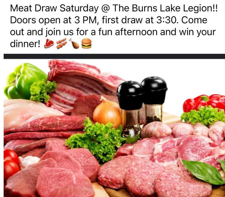 Meat Draws are held every Saturday. We have 3 draws every ½ hour; 4PM, 4:30PM, 5PM & 5:30PM, And the Breakfast Draw at 5:40PM Tickets are 3 for $5, or 7 for $10.