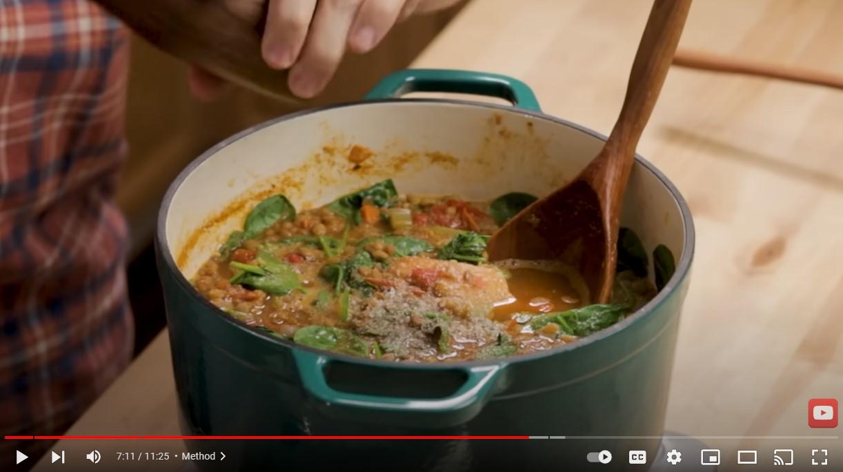 After the lentils are cooked through and tender, turn off the heat and add the baby spinach.