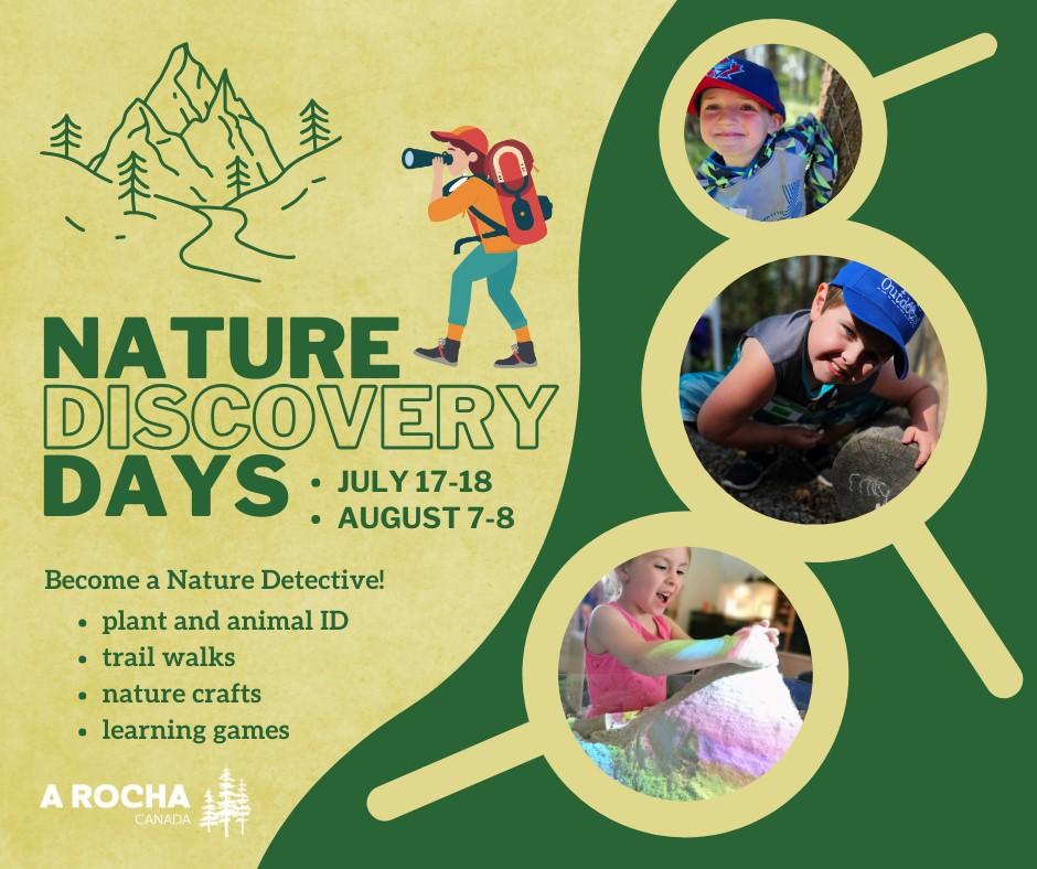 Register for Nature Discovery Days on July 17-18 and August 7-8 (register on Eventbrite)! Two full days of exploration for ages 6-12, 10am3pm, $40/day. Become a Nature Detective! Find clues to what plants and animals live in the forest and fields and water near the Buck Creek Hatchery and Nature Centre in Houston, BC. *You can register for 1, 2 or all days, and each day will cover a different topic. If you have questions, please call 778-642-3897 or email houston.bc@arocha.ca