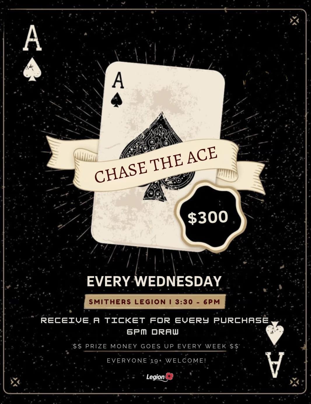 Chase the Ace Every Wednesday 3:30-6pm receive a ticket for every purchase. 6PM draw