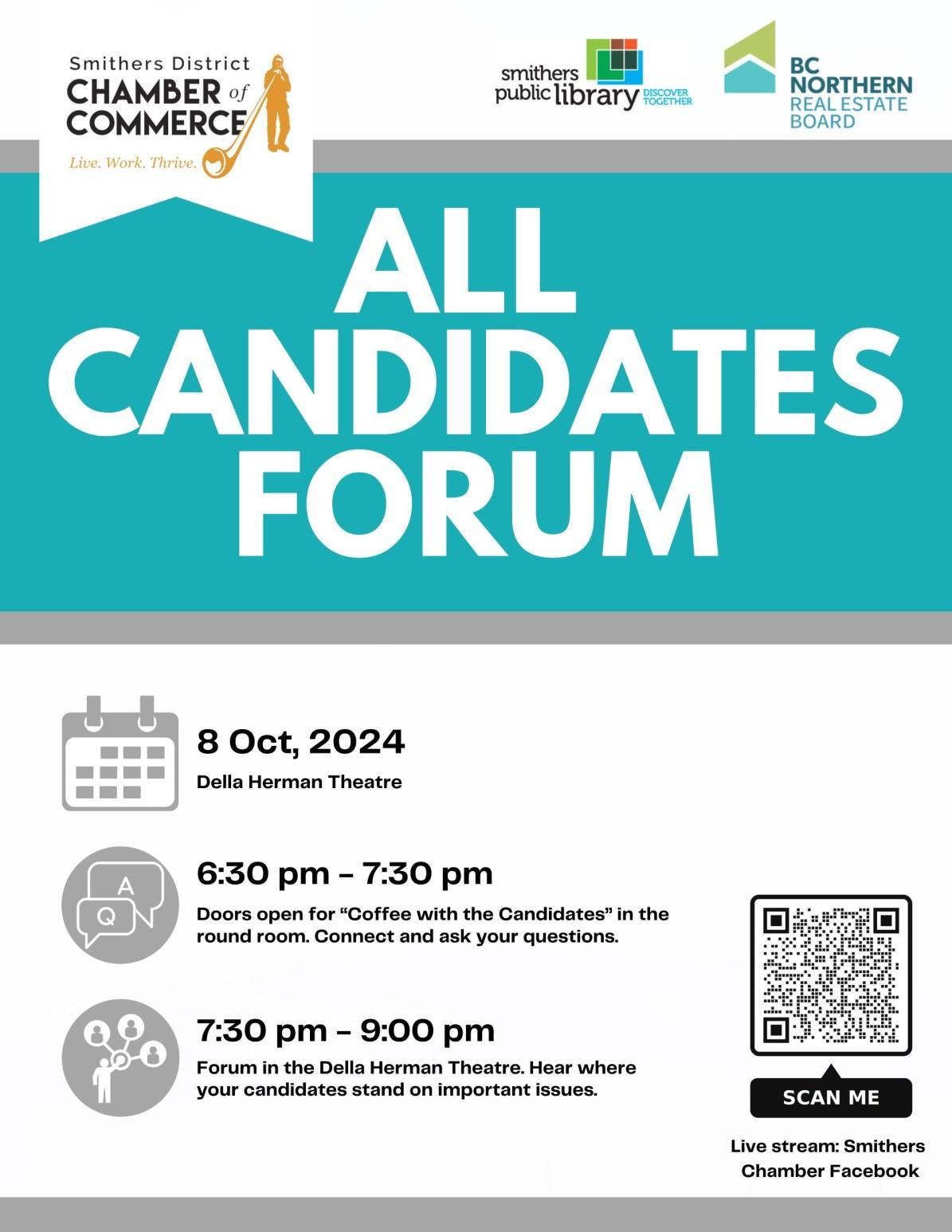 Coffee with Candidates and Forum Tuesday, October 8, 2024 Doors open at 6:30 p.m. | Forum begins promptly at 7:30 p.m. Della Herman Theatre