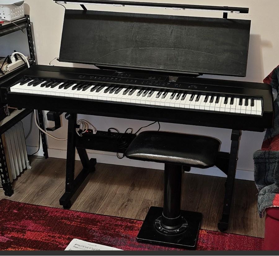 Stand with locking wheels & LED Sheet Music stand. Still on a 3 year warranty