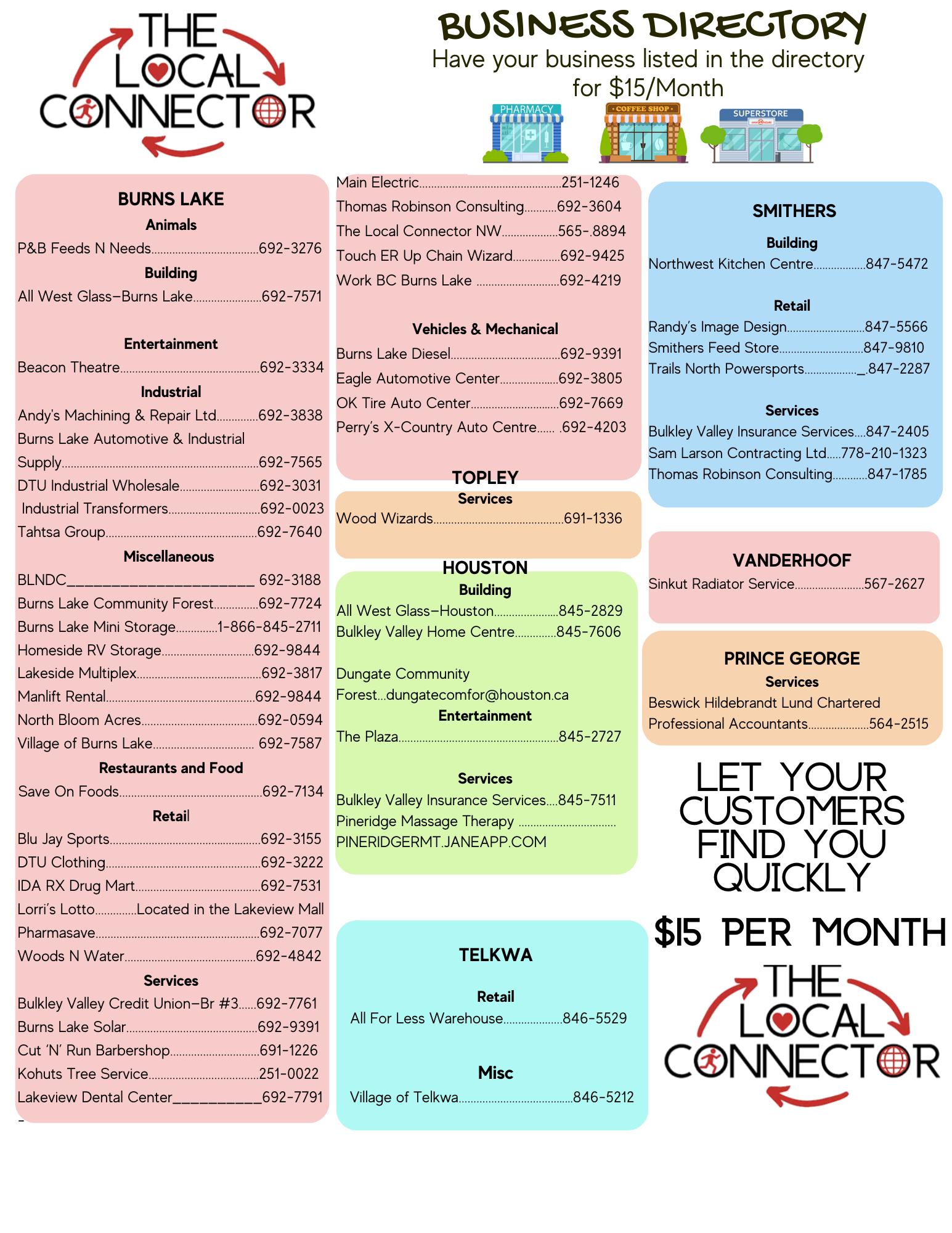 250.847.5566 www.randysimagedesign.com #1-3167 Tatlow Rd. Smithers, B.C. ADD A PHOTO TO YOUR FREE CLASSIFIED $5.00 PER WEEK ASKING $2000 was purchased 6/07/2024 for $3000.00 incl.