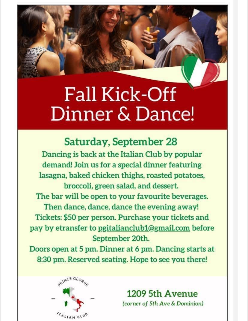 Fall Kick Off Dinner & Dance Sept 28 at 1209 5th Ave . For more info go to page 13.