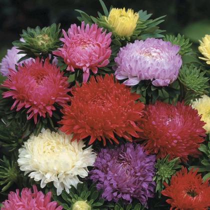 This showy, peony-flowered, Aster is magnificent. 5-8 floral stems per plant. The mix has 12 colours, including bicolours. A top notch, long lasting cut flower mix.