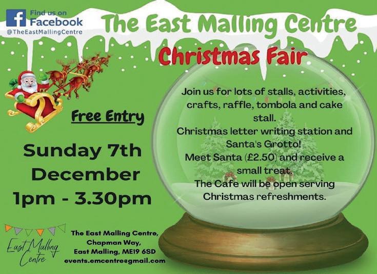 Sunday 7 Dec 1-3.30pm East Malling Centre Christmas Market. See p29