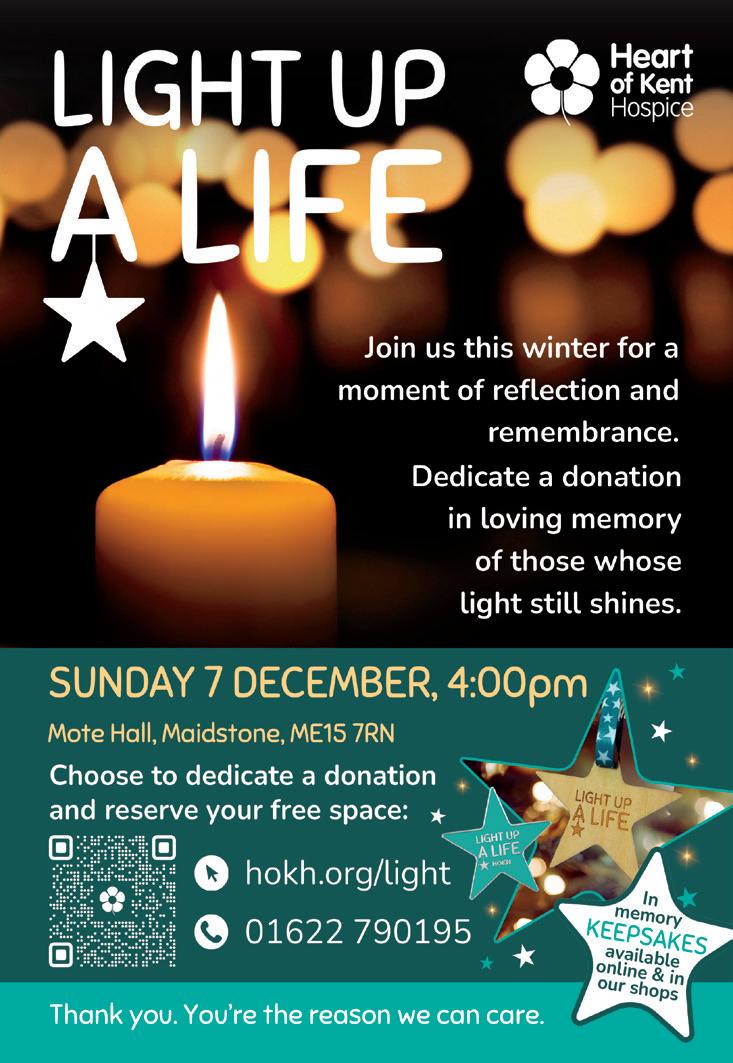 Saturday 13 & Sunday 14 December 12-5 Larkfield Methodist Church (opp Morrisons) Christmas Tree Festival. See the trees and follow the Nativity story trail. Christmas gifts, cards & refreshments. Plus carol singing Sunday afternoon 3pm SEE PAGE 29 FOR CHRISTMAS CHURCH SERVICES