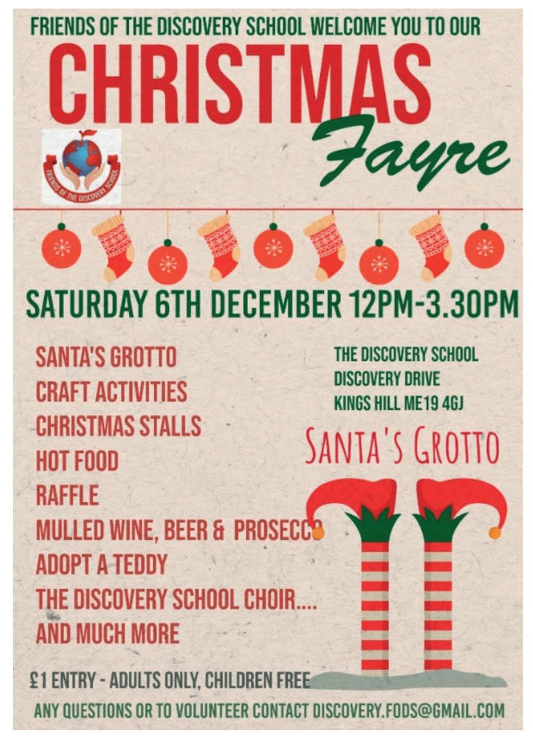 Saturday 6 Dec 12-3.30pm Discovery School Christmas Fayre. See p28