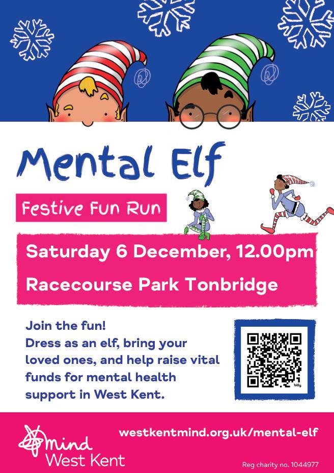 Saturday 6 Dec 12pm West Kent Mind Mental Elf 5k fun run. Racecourse Park Tonbridge. See p28