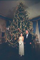 President Lyndon B. Johnson and First Lady Bird Johnson in front of the Blue Room Christmas Tree, 12/13/1966