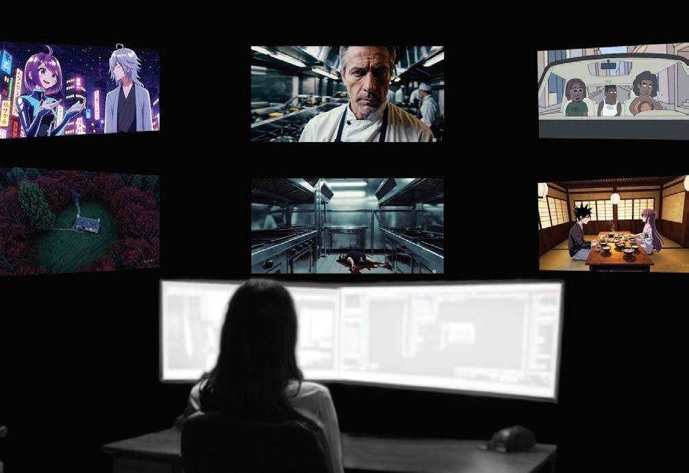 makers explores this dichotomy in this issue. In Jordan McGarry’s interview (page 34) with Charismatic AI there’s veritable excitement about new forms of content waiting to be co-created by machine. If the Hollywood studio system is collapsing, scriptwriters don’t need to take it lying down. We talk to a pair of seasoned scribes (page 88) using AI to bring their vision to life while keeping humans in the loop.