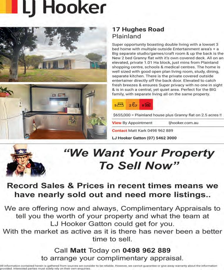 RESPONSIBLITYFOR ELECTION MATERIAL INTHIS NEWSPAPER IS TAKEN BY BRUCE HORROCKS (GENERALMANAGER/EDITOR) SHOP 2,45 NORTH STREET, GATTON QLD 4343.