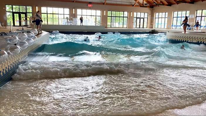 The indoor pool produces waves every 20 minutes