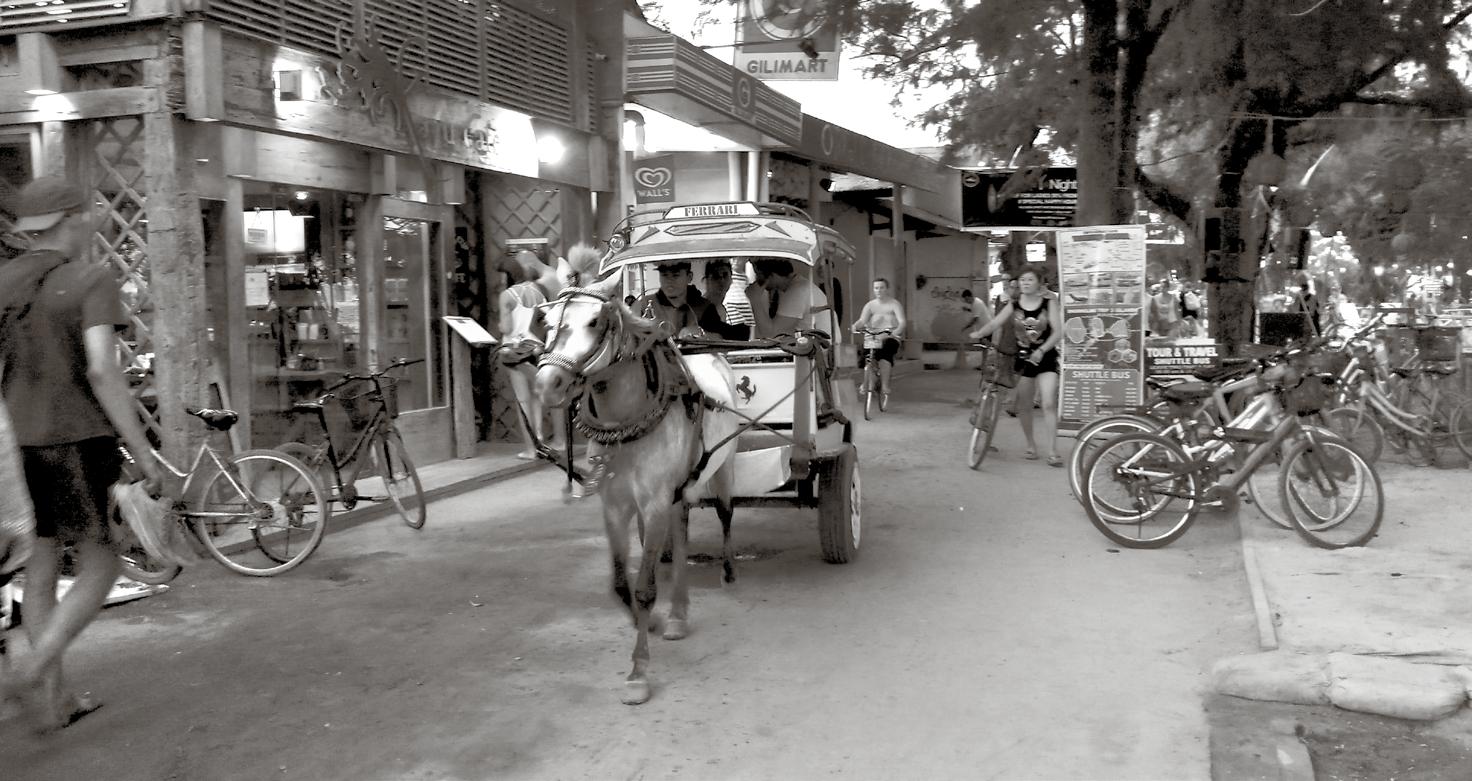 Cidomo (pronounced ‘chi doh moh’) are traditional horse drawn carts that were once the main form of transport in Lombok. The covered wooden carriages are pulled by small local ponies and are used for transport on the Gilis, and for carting goods.