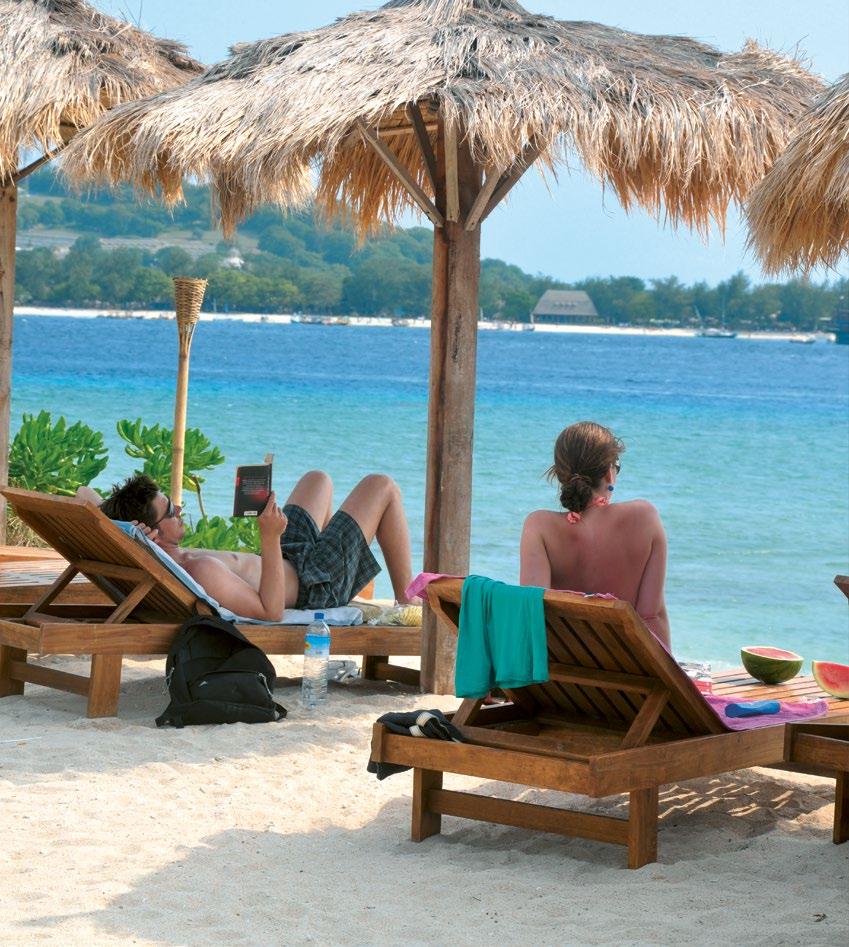 The busiest area on Gili T is the east coast, but Gili T’s popularity means hotels and cafés extend around the entire island.