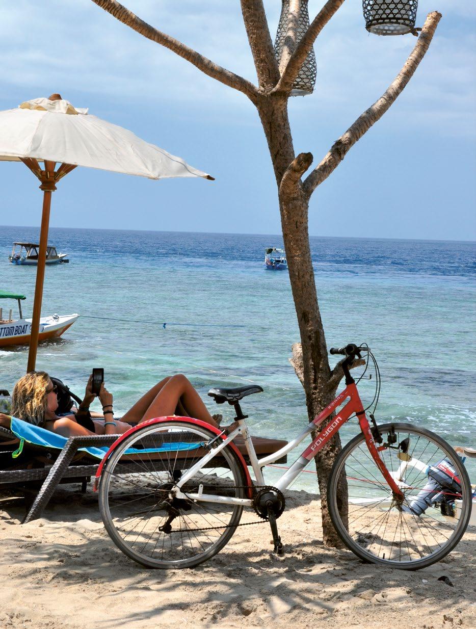 As there are no cars on any of the Gilis, riding a bicycle is a popular way to get around. All three islands have a good ring road that follows the shore and there are smaller roads branching off to inland destinations to explore. There are beachfront bars and cafés to stop at whenever you get hungry or thirsty, or grab an ice cream or frozen yoghurt while you stop to admire the views.