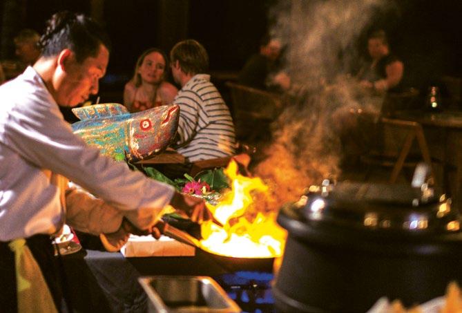 There is a roadside coffee shop serving delicious cakes and barista coffees and, upstairs at Surf Kitchen, enjoy fresh sea breezes and tasty western and Asian meals, full bar service and cold beers.