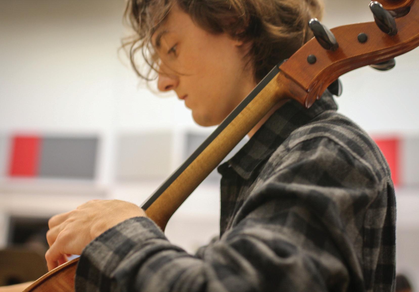 PHOTO ESSAY Junior Will Gum works on his playing as well as composing his own original musical works.