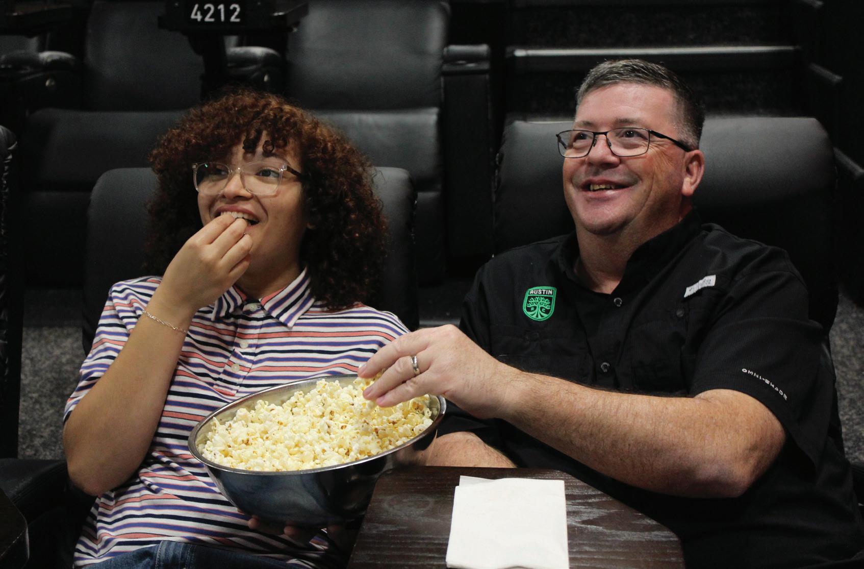 Special items that are not available in other movie theaters, such as the Royal burger, can reach up to almost $20, not including tax. Other standard items, such as their bottomless popcorn, do not differ much from the prices of other movie theaters in Austin, such as Cinemark. Although a little pricey, when the food is steaming with freshness, splurg ing on snacks at the Alamo Drafthouse comes easily. Although the service is great, the food is phenomenal, and the seats are comfortable, there is one drawback besides the price of snacks. This theater requires all attendees under 18 to have a legal adult accompany them since it is also a bar. This rule extends to all movies, even ones rated PG. Making sure all viewers are accompanied by an adult prevents child-like behavior and protects the cinematic experience that the Alamo Drafthouse staff work so hard to provide. I understand the reasoning behind this rule, but my dream of relaxing after school to watch a movie in a place as cinematic as the Alamo Drafthouse cannot be complete unless I have an adult with me. The Alamo Drafthouse has a location on Slaughter Lane, right down the road from Bowie, but because of the age restrictions, kids cannot experience