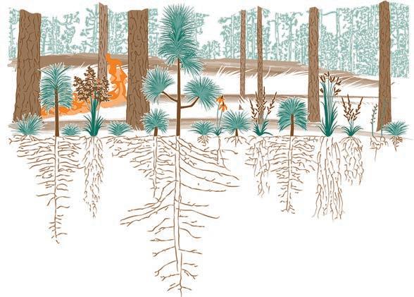 hold the soils together and reach deep resources. These root support systems add to the resiliency of longleaf habitats in the face of more frequent drought periods and severe storm events. As we move forward, these adaptations will give longleaf an advantage in a changing climate.