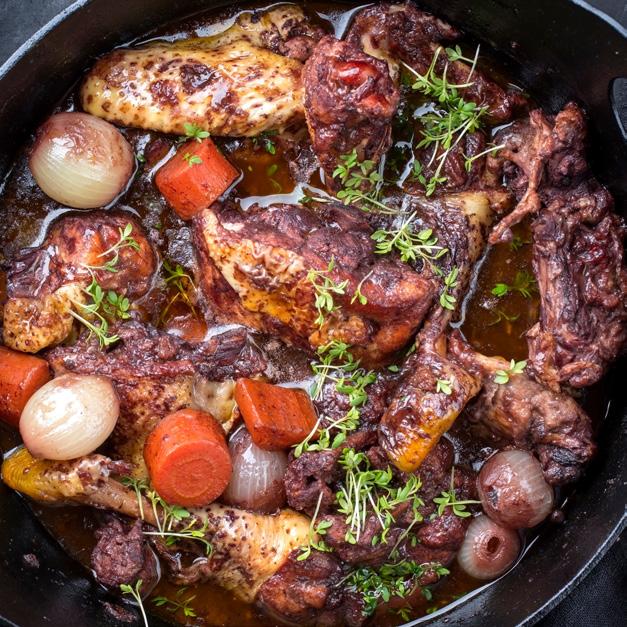 My favorite thing he prepared for me was Coq au Vin – as Jamie was a serious student of French cooking, of the opinion it was the best in the world. While I had many “stews” growing up, a truly well-made Coq au vin is an elegant and wonderful thing in the hands of someone skilled. Cooking with wine, making sauces, layering ingredients - taken all together, it was the next step in my gastronomic journey. Upon my return to the US the following year, the first thing I did was invest in a set of proper cookware and began my own journey to expand my culinary horizons. To Coq au Vin I owe the beginning of my love of French food.