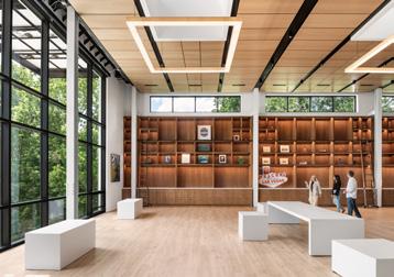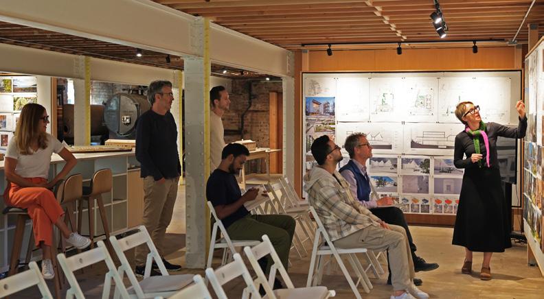 Colloquially known as the House Up on the Hill (or HUOTH), HMTX’s new home base is more than “a place to sit and answer emails,” according to Stone. It is “a house, a place where we gather to create.” The building is many things at once: a collaborative maker space, a community space, an exhibition space, a museum, an office building, and a retreat all under one roof. Completed in 2022, HUOTH is a future Petal-certified, mixed-use building that embodies a lowimpact approach to sustainable and passive design.