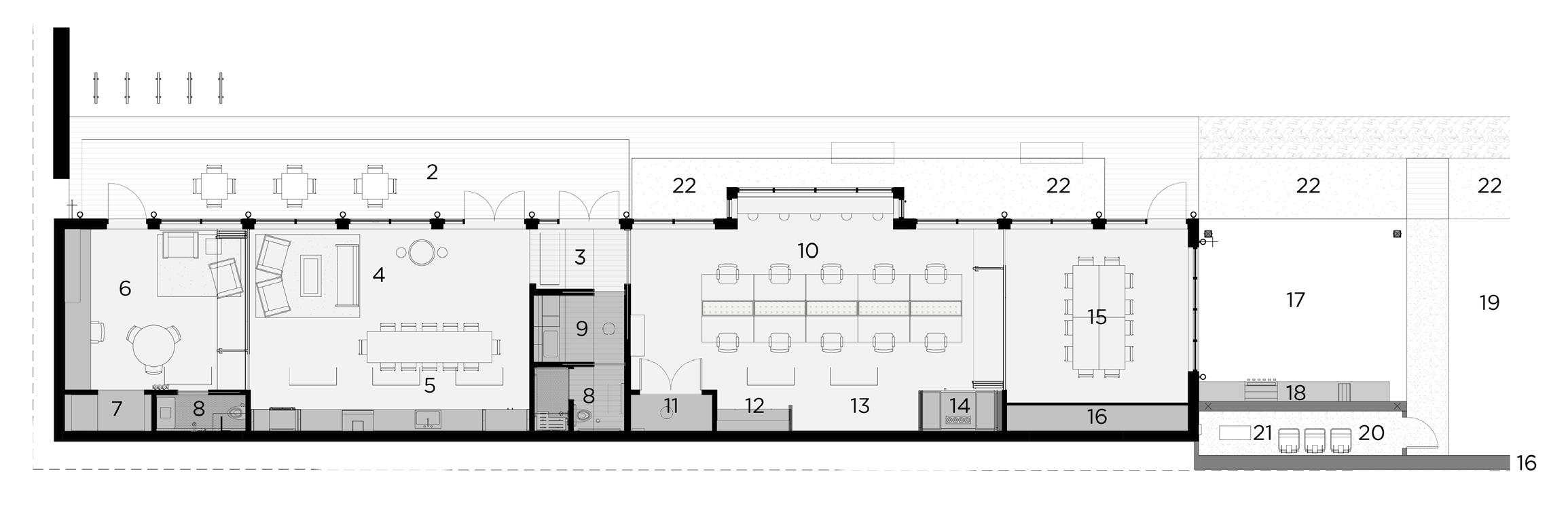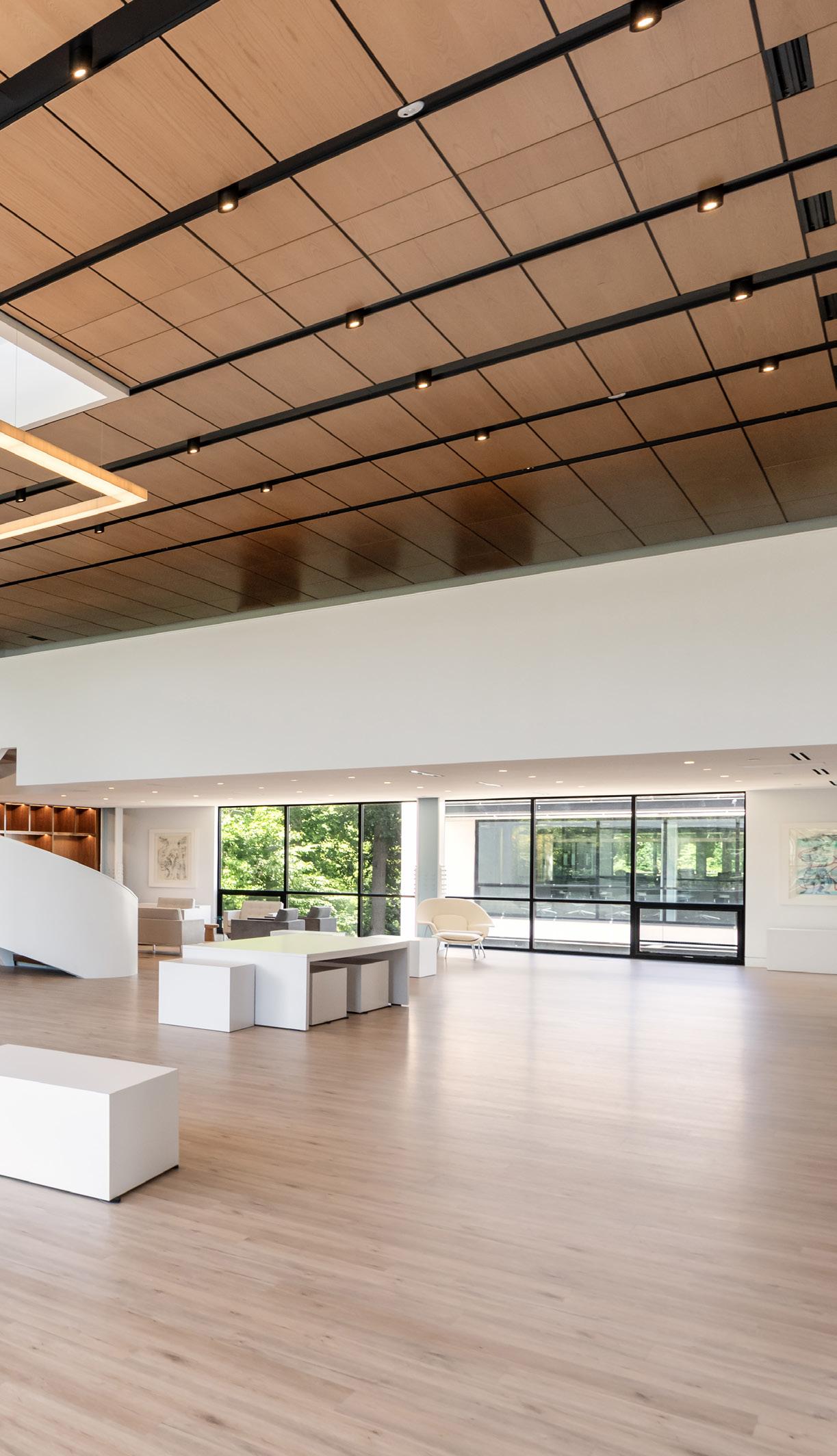 In the HMTX project, roof monitors illuminate and ventilate the interior, creating a comfortable and inviting atmosphere. With motorized openings, these south-facing skylights ensure a balanced spread of daylight, enhancing sustainability and occupant comfort. They exemplify HMTX’s holistic approach to sustainable design and maximizing the benefits of natural daylight.