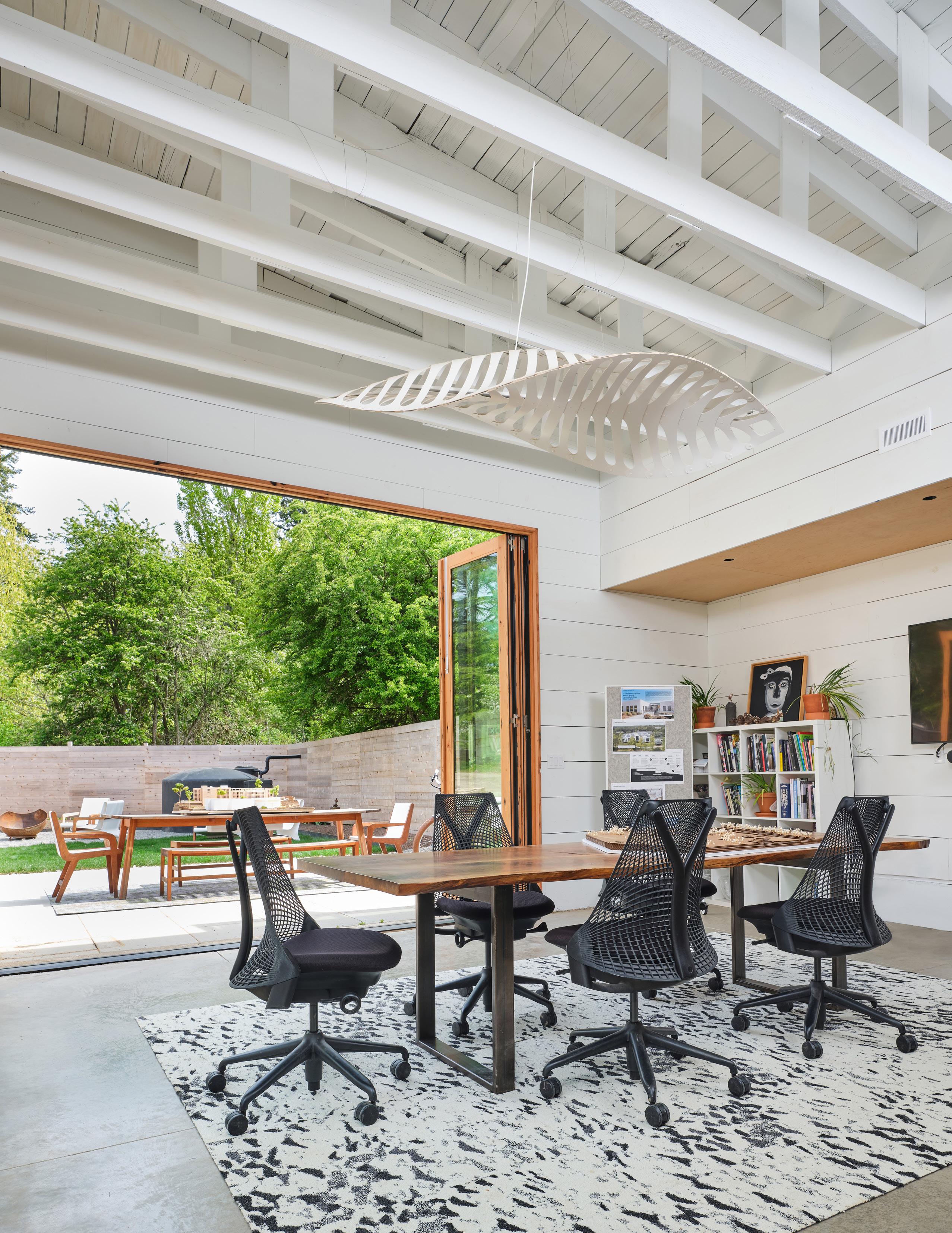 Thoughtful architectural design that integrates daylighting can significantly enhance the quality of indoor spaces while also promoting energy efficiency and sustainability. Following these good daylighting principles, nearly every interior space receives daylight from at least two sides, with the majority offering views and daylight on three or more sides. This maximizes the quality of each space and provides a pleasant experience for the office staff, improving their health and the building’s energy efficiency. It also serves to develop a deep-rooted connection to the landscape beyond, allowing building occupants to feel nestled amongst the tree canopy and be constantly connected to nature and views outdoors.