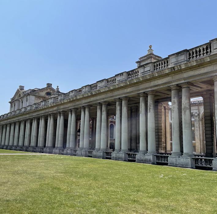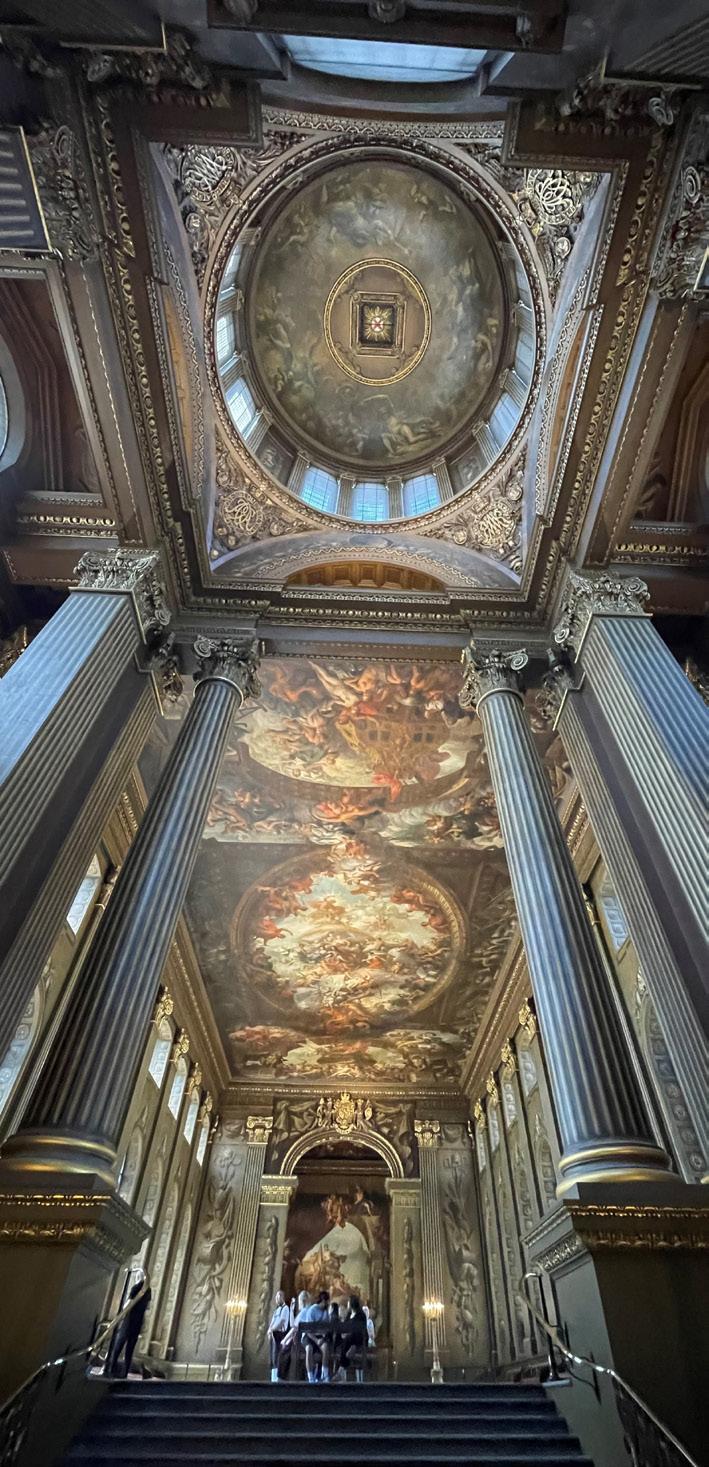 The top left photo shows the ornate cornice and Corinthian column caps at one of the buildings at the Old Royal Naval College in Greenwich, London England. This is a UNESCO World Heritage site that has played a role throughout 600 years of British history. Designed by architect, Sir Christopher Wren, the multiple buildings on this campus in London once serves as the Royal Hospital and a Royal Naval College.