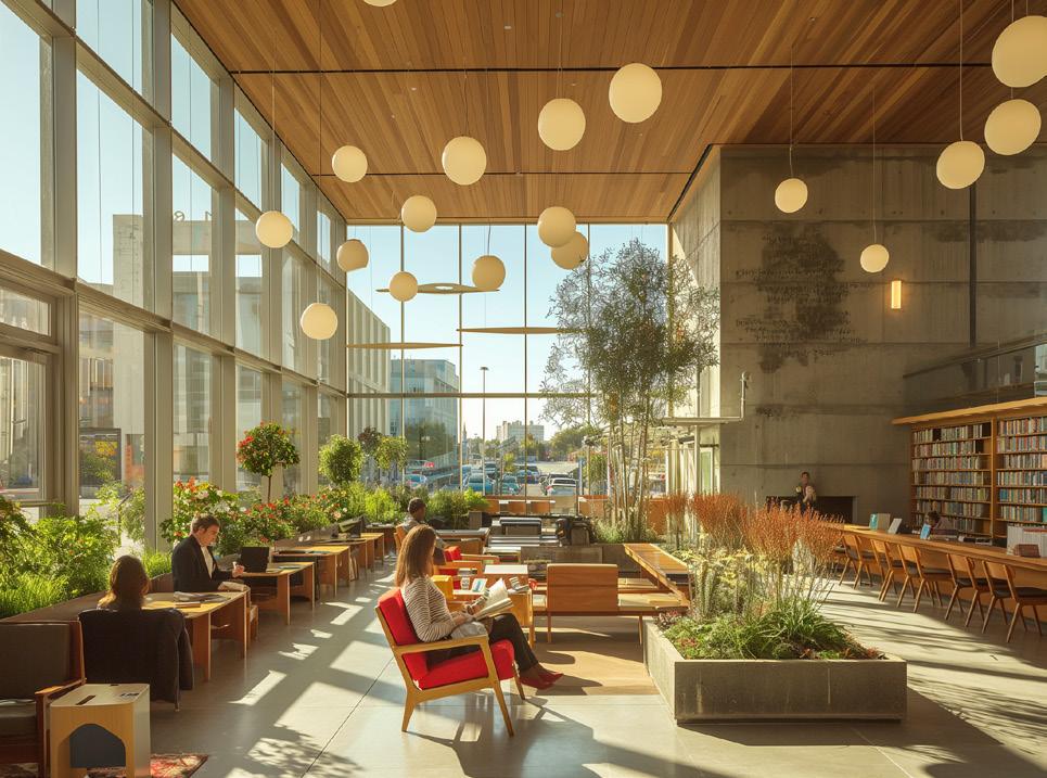 In 2049 the library atrium is transformed from the existing space into an abundant life-filled biophlic indoor environment!