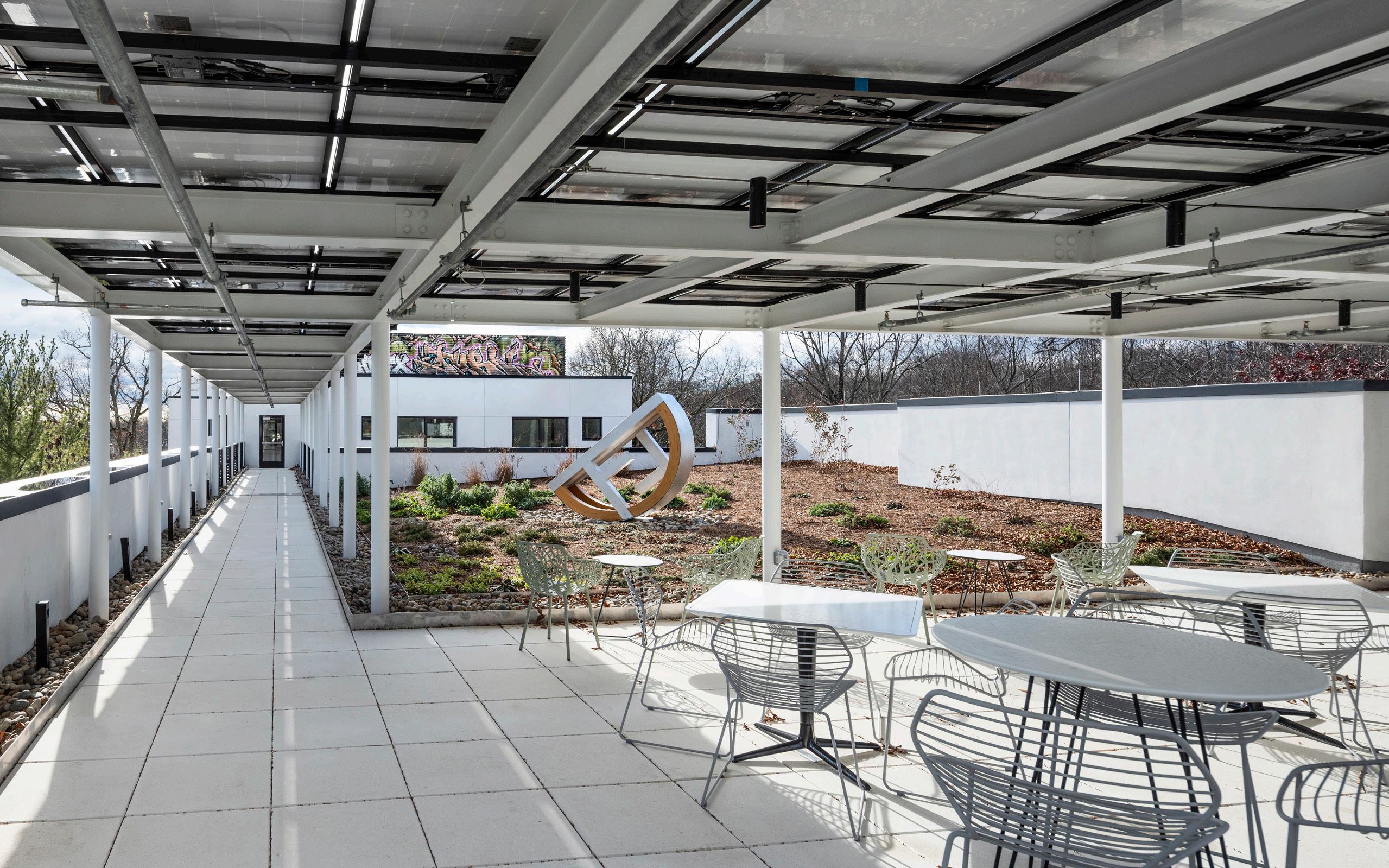 HMTX World Headquarters is being billed as the greenest building in the State of Connecticut. Designed around the Living Building Challenge, the building is on track to achieve all the petals of the LBC excluding water, while still being exemplary in that area as well. The project is a mixed use facility with offices, a product design innovation and fabrication maker facility, artist-in-residence housing units, and space that serves as an art gallery for the company’s private art collection. Powered completely by renewable energy on-site, the project focuses on art, technology, and product creation. The stately design showcases that it is possible to balance modern design–inspired by Bauhaus design principles where form is derived by function–within a deeply biophilic and deep green philosophical framework.