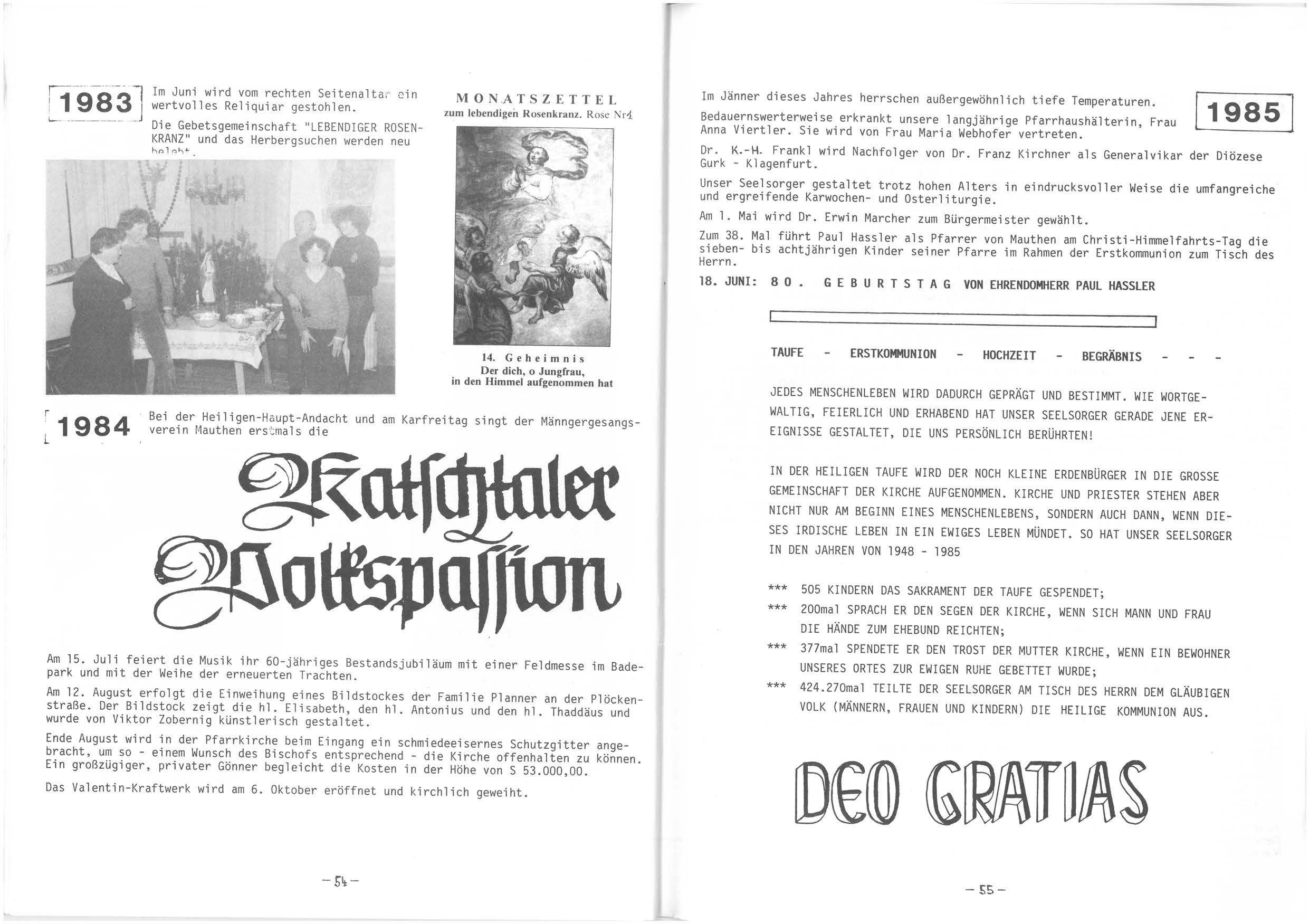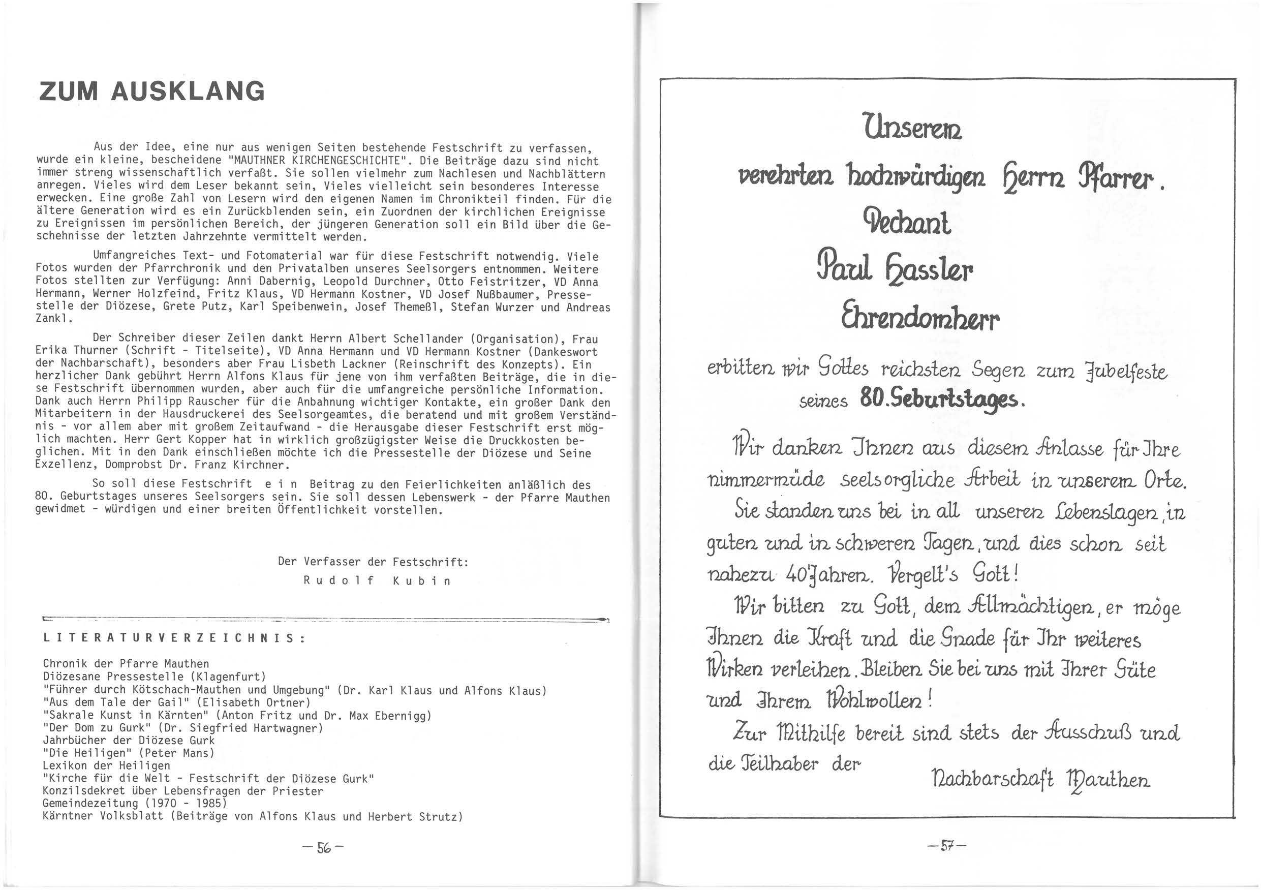Aus einer Idee, eine nur aus wenigen Seiten bestehende Festschrift zu verfassen, wurde eine kleine, bescheidene "MAUTHNER KIRCHENGESCHICHTE". Die Beiträge dazu sind nicht immer streng wissenschaftlich verfaßt. Sie sollen vielmehr zum Nachlesen un Nachblättern erwecken. Eine große Zahl von Lesern wird den eigenen Namen im Chronikteil finden. Für die ältere Generation wird es ein Zurückblenden sein, ein Zuordnen der kirchlichen Ereignisse zu Ereignissen im persönlichen Bereich, der jüngeren Generation soll ein Bild über die Geschehnisse der letzten Jahrzehnen vermittelt werden.