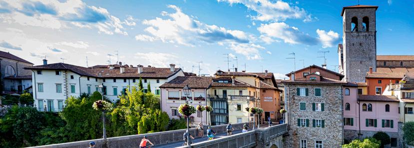 VORALPEN-RADWEG (FVG3) Der Radweg führt am Fuße der Voralpen durch Dörfer, Städte mit typisch ländlicher Steinarchitektur und die Weinbaugebiete, aus denen die berühmten Weine des Grave, Colli Orientali del Friuli und Collio stammen. Die Route weist nur geringe Höhenunterschiede auf und besteht aus Radwegen, einfachen Feldwegen und wenig befahrenen Straßen. Die Route beginnt in Sacile, einem Ort, der über den Fluss Meschio mit dem Radweg München-Venedig (SacileVittorio Veneto) verbunden ist, und endet in Gorizia, das mit dem AdriaBike verbunden ist. Wir fahren durch die Unesco-Stätte Cividale del Friuli. Etappen SacileManiago - Gemona del Friuli - Cividale del Friuli - Gorizia. Gesamtlänge 180 km.