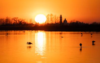 • Die Lagune ist voller Inseln, die man mit dem Boot erreichen kann, wie die Insel Barbana, auf der sich ein Heiligtum der Benediktiner befindet, der Anfang des Himmelsweges, oder die Insel Mota Safon mit der Fischerhütte von Pasolini sowie die Naturschutzgebiete, in denen man rosa Flamingos und Camargue-Pferde bewundern kann