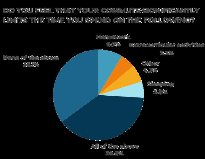 According to a survey administered by e Lowell in January 2025, 64.9 percent of respondents said that their commute signi cantly limited the amount of time they are able to spend on activities including homework, extracurriculars, spending time with friends, and sleeping. Although the convenience and e ciency of transit routes varies for students living in di erent