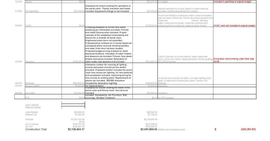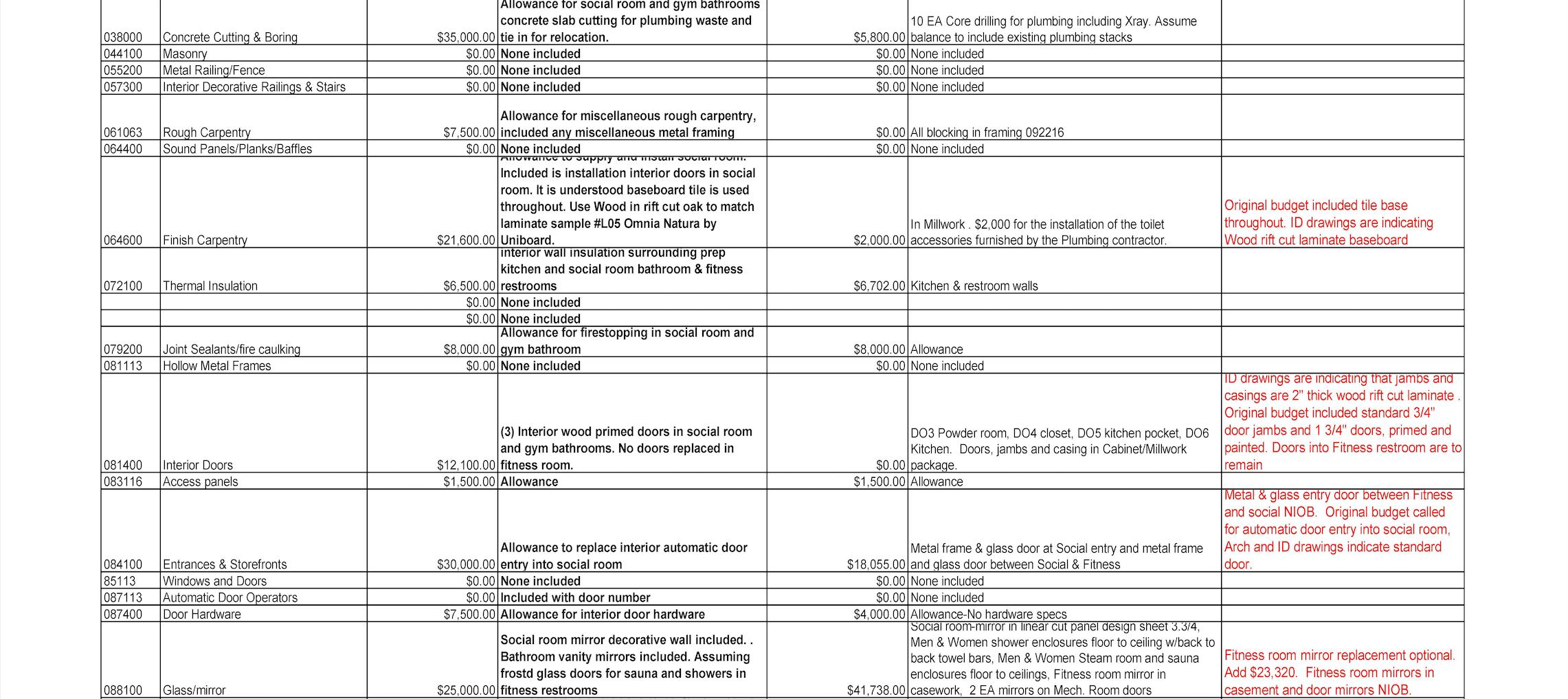 2. There is a significant amount of work in the latest set of plans that was not considered in the original budget. This includes but is not limited to: