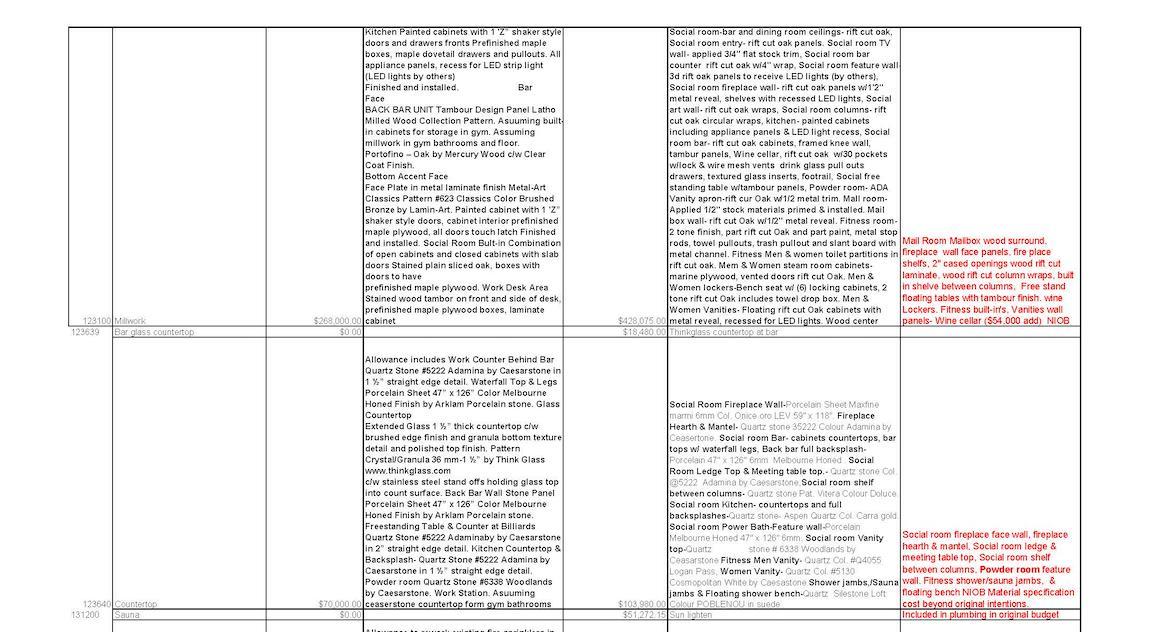 1. We received the latest Interior Design drawings and specifications on May 21 and due to this late issuance, we were only able to obtain one quote for the Millwork and Tile/Stone scopes of work. This leads us to have a lower level of confidence than we would prefer for the pricing on these scopes of work.