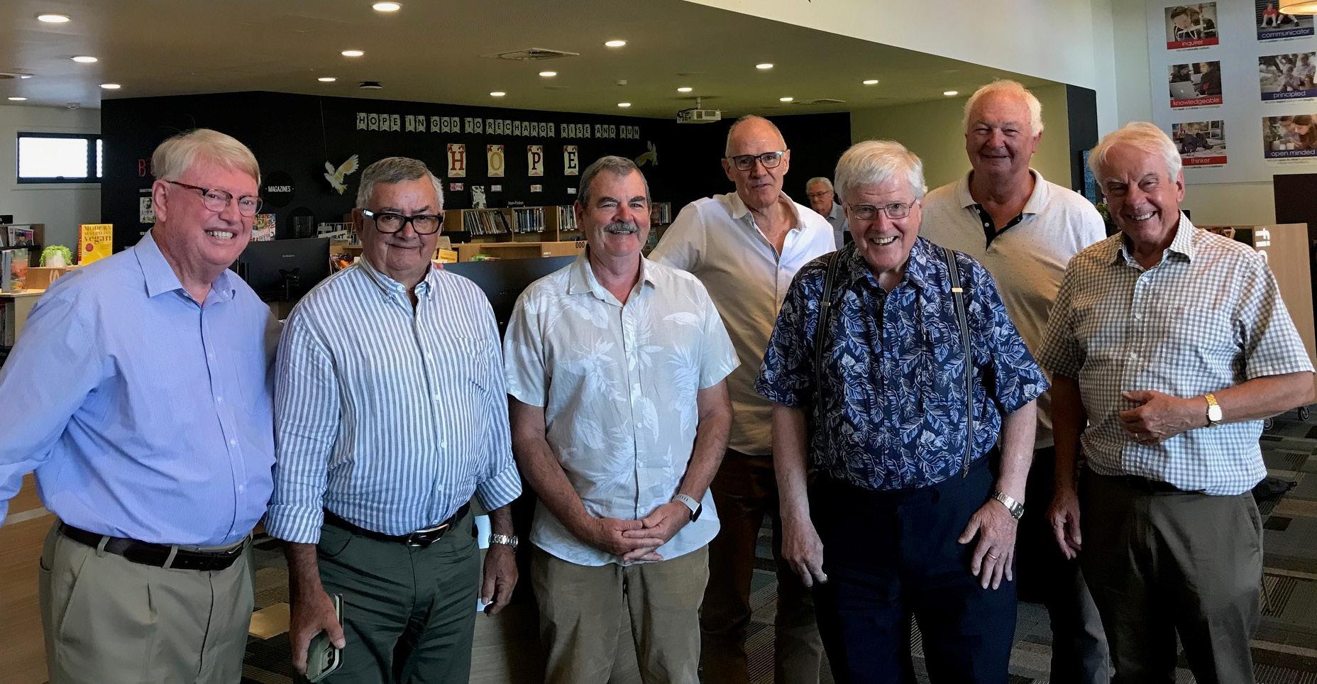 Right: Rob Hoff, far left, who these days mentors young principals in the independent schools system, also enjoys coordinating events for fellow retired Lutheran principals.