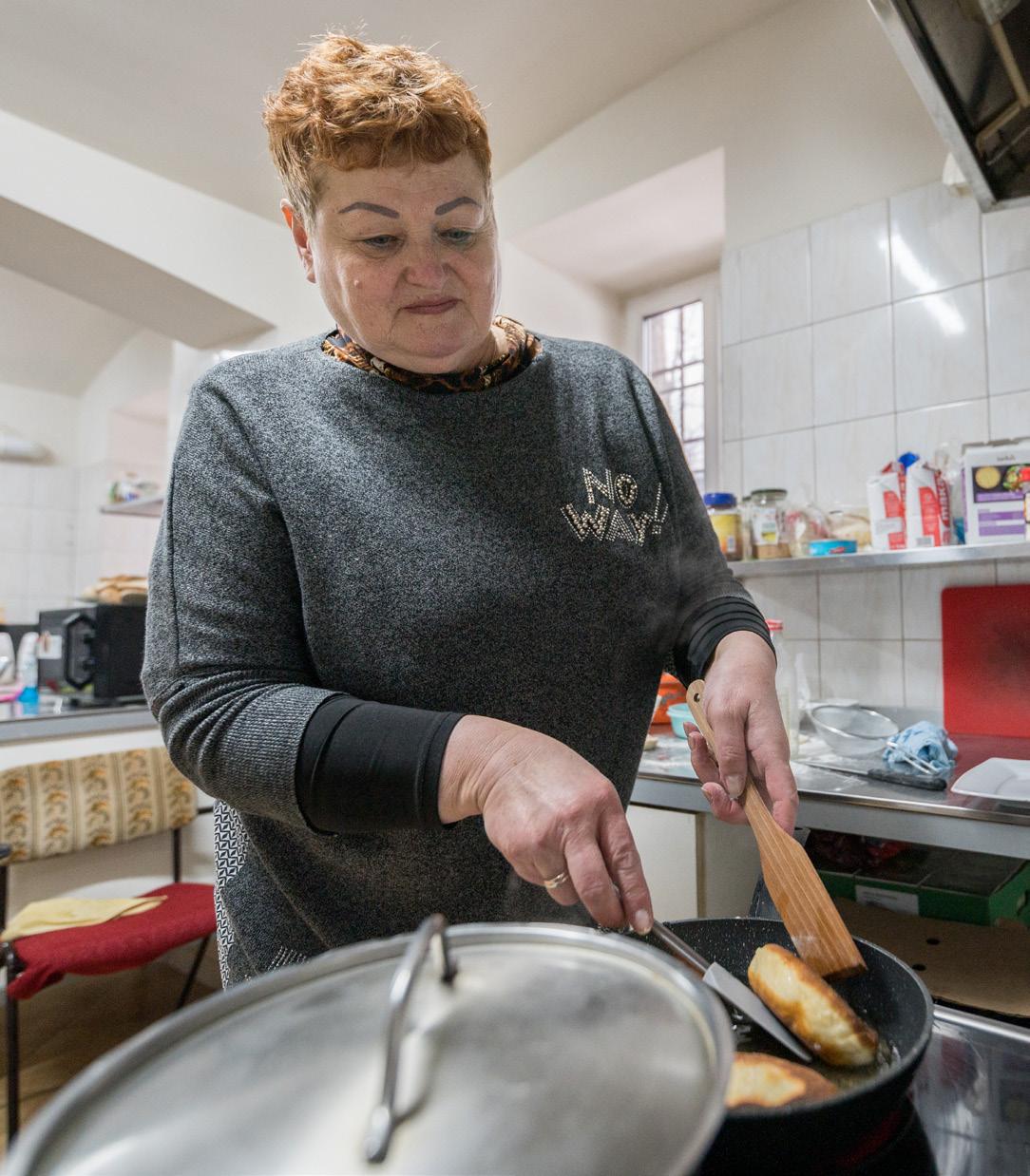 their hearts and homes. Motylenko Halina (above left), who fled Kyiv, prepares a meal in the home the church in Poland has renovated to care for refugees as guests. The house hosts 20 people from seven families, mostly women and children.