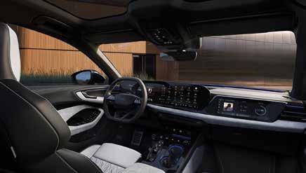 Inside, the A5 showcases Audi’s newest interior language, anchored by a large curved digital display housing three