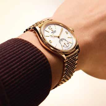The Perpetual 1908 in 18 ct yellow gold features the new Settimo bracelet, which is composed of rows of polished seven small links size 39mm. The watch comes in Intense White and Intense Black dials. The geometry of the new bracelet adds to its elegance as well as its lightweight.